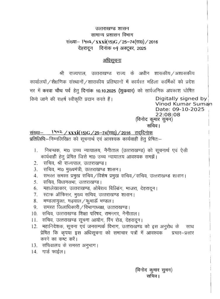 उत्तराखंड ब्रेकिंग: कल छुट्टी का आदेश, पढ़े खबर